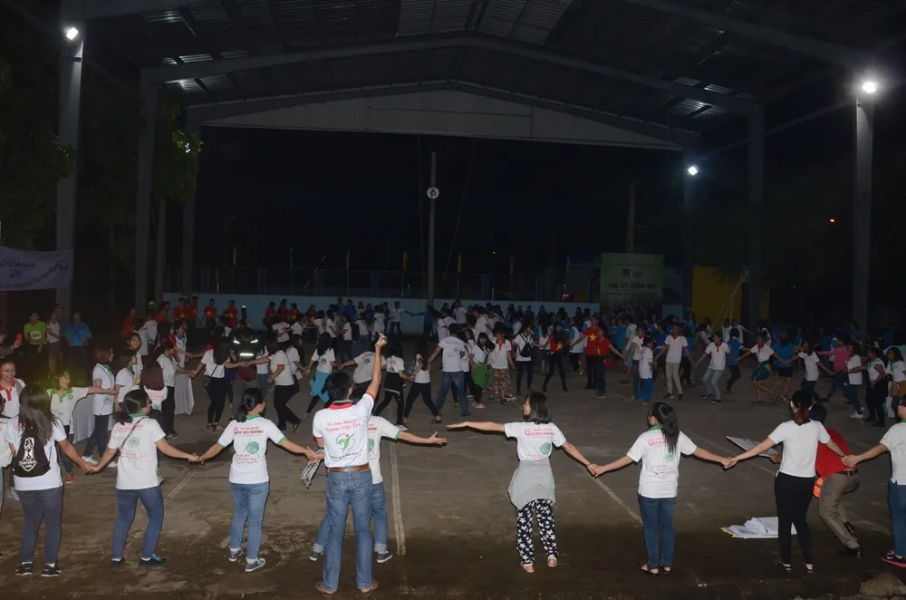 Các tình nguyện viên nắm tay nhau hát vang những ca khúc tình nguyện.