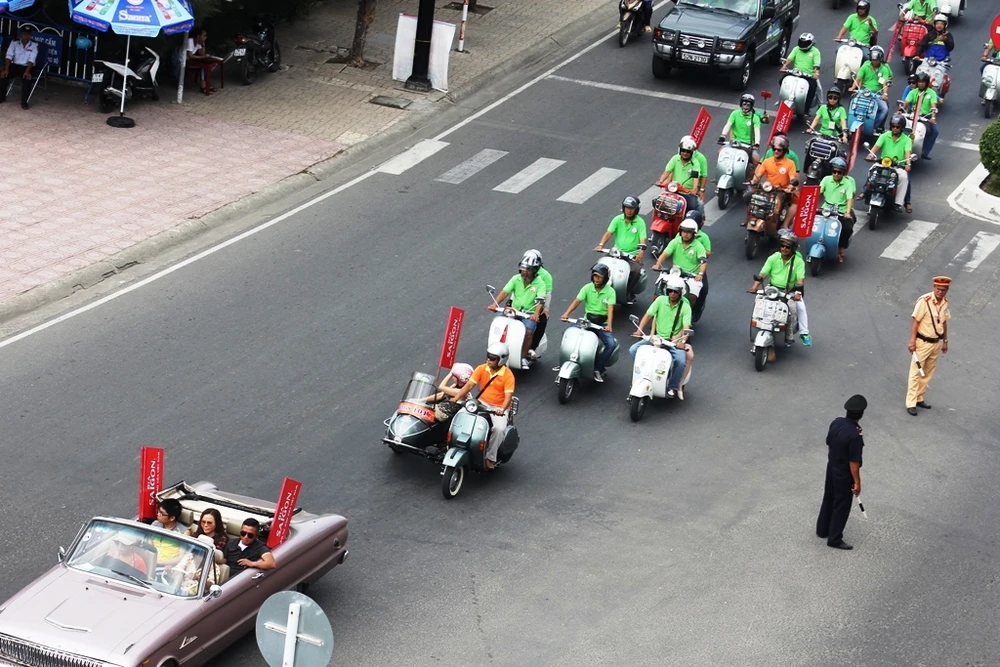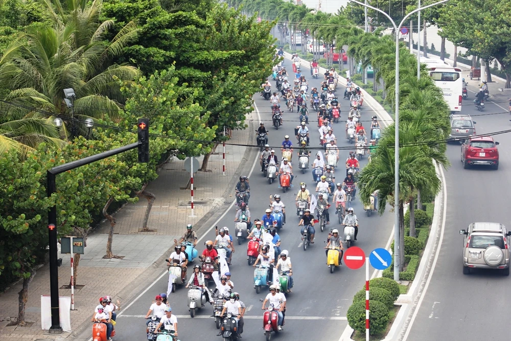 Vào khoảng hơn 8 giờ, các thành viên tập trung tại quảng trường Hai Tháng Tư. Với sự hướng dẫn của lực lượng chức năng, đúng 9 giờ đoàn xe Vespa xuất phát diễu hành trên các tuyến đường gồm: Trần Phú - Phạm Văn Đồng - Đặng Tất - Hai Tháng Tư - Quang Trung - Lê Thánh Tôn và kết thúc tại quảng trường 2-4 an toàn.