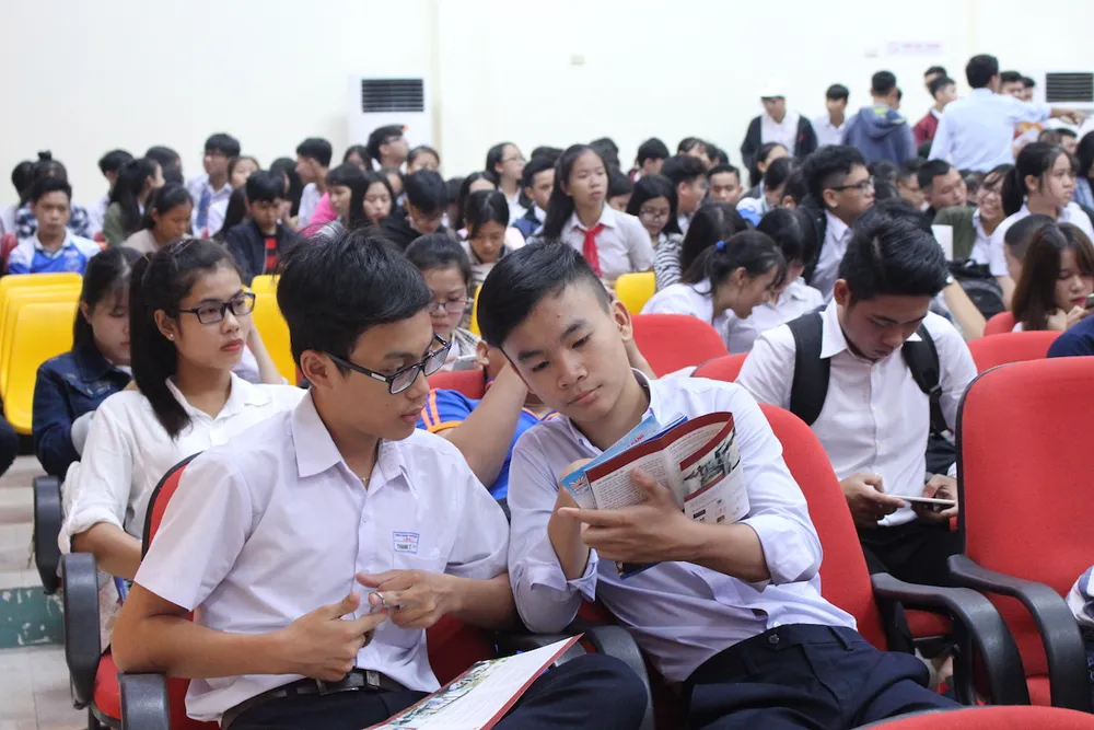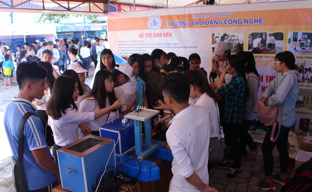 5.000 học sinh các trường trên địa bàn TP Đà Nẵng đến tìm hiểu cơ hội nghề nghiệp, tìm hướng đi mới cho tương lai chứ không phải cứ ào ào vào đại học. Ảnh: KIỀU TÂM.