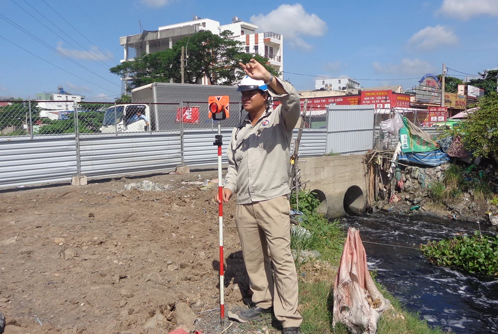 Công tác đo đạc để chuẩn bị thi công cầu chính cũng đã được triển khai.