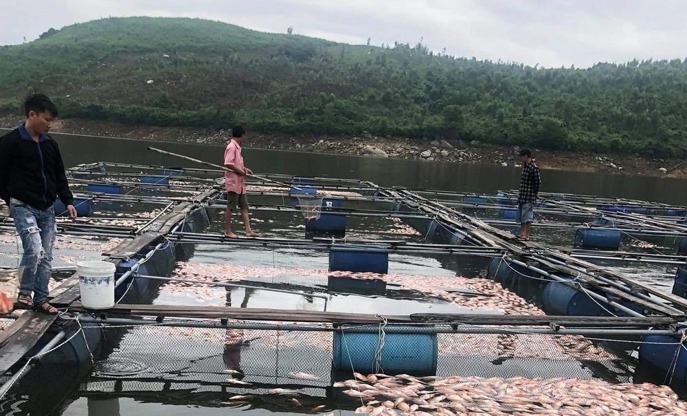 Ông Nguyễn Chí Tài (56 tuổi, trú thôn Phú Đông, xã Đại Hiệp) cho biết chiều 26-11, cá trong lồng bắt đầu chết lai rai. Khoảng 3 giờ ngày 27-11, ông phát hiện cá chết nổi đỏ hồ. Mặc dù trước đó ông đã nổ máy sục tạo ôxy nhưng vẫn không ngăn được.