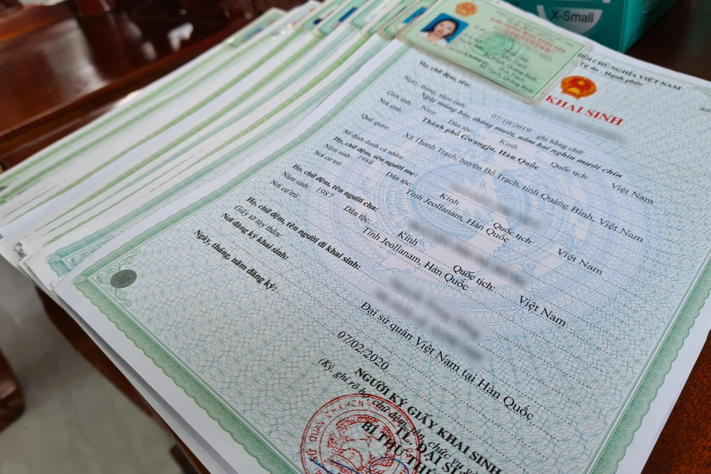 Giấy khai sinh và giấy tờ của người thân chăm sóc các bé được Trung tâm y tế huyện Bàu Bàng kiểm tra cẩn thận. Ảnh: LÊ ÁNH