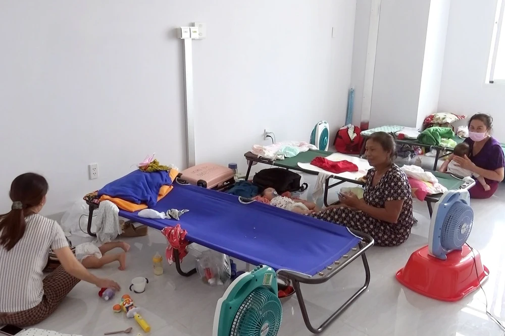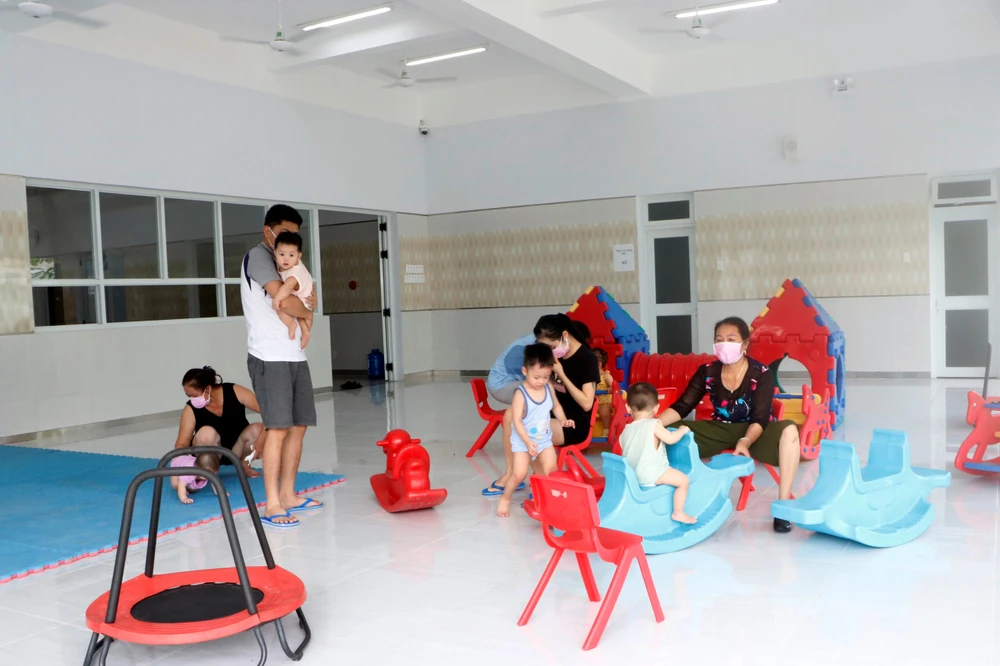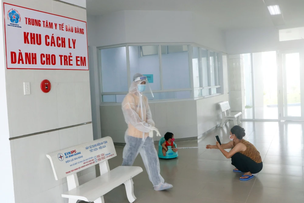 Khi tiếp nhận số trẻ em này, Trung tâm y tế huyện Bàu Bàng đã linh động bố trí một khu cách ly dành riêng cho trẻ em, để tiện theo dõi chăm sóc sức khỏe cho các em. Ảnh: LÊ ÁNH