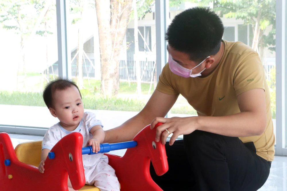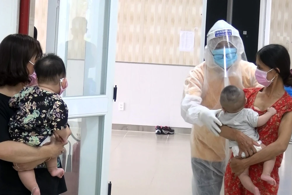 Ngày 8-9, sau hơn 2 ngày trở về Việt Nam và được cách ly tại khu cách ly tập trung Trung tâm y tế huyện Bàu Bàng (Bình Dương), 53 trẻ nhỏ dưới 1 tuổi đã quen hơi người thân và không còn khóc nhiều.