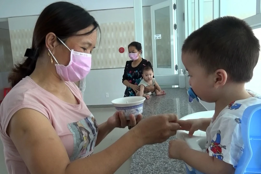 Đồ ăn dành riêng cho trẻ em cũng được Trung tâm y tế huyện Bàu Bàng bố trí chu đáo, ngon đầy đủ chất dinh dưỡng, bảo đảm vệ sinh. Ảnh: LÊ ÁNH