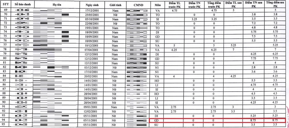Cụ thể, có 62 bài thi trắc nghiệm được tăng điểm. Trong đó có 58 bài thi trắc nghiệm bị điểm 0 được tăng điểm sau phúc khảo. Nhiều bài từ 0 điểm tăng lên 4, lên 5, lên 6, lên 7,75 điểm. Bài thi tăng điểm nhiều nhất lên đến 8,75 điểm. Còn bài thi tăng điểm ít nhất là lên 2,6 điểm.