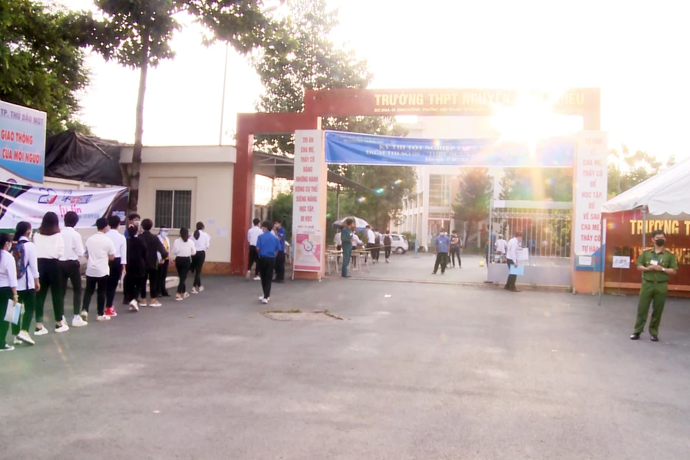 Ghi nhận tại bình Dương, tại các điểm thi đều thực hiện nghiêm ngặt quy định 5K của Bộ Y tế, công tác đảm bảo an ninh trật tự cũng được lực lượng công an siết chặt.