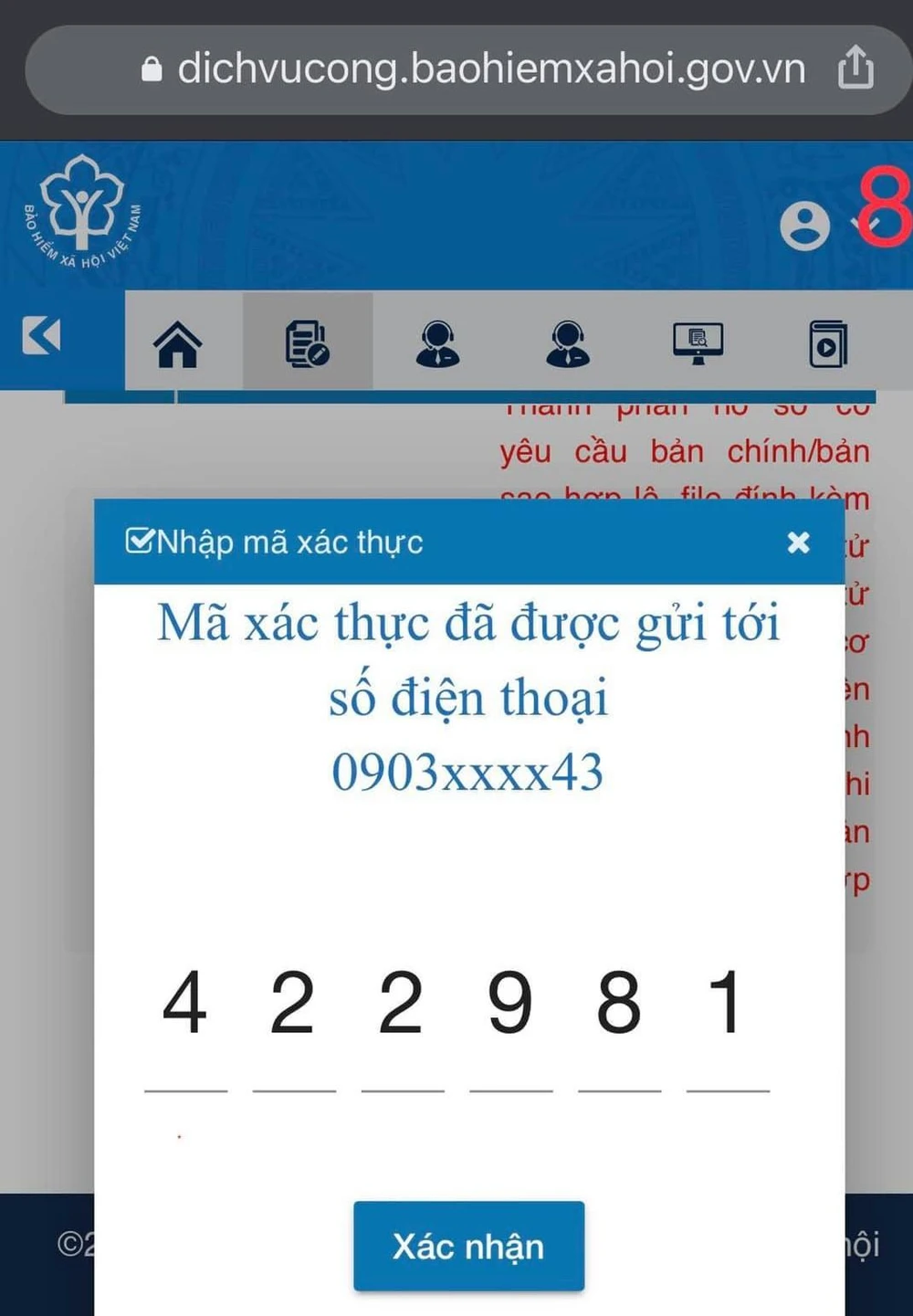 + Nhập mã xác thực nhận được qua tin nhắn