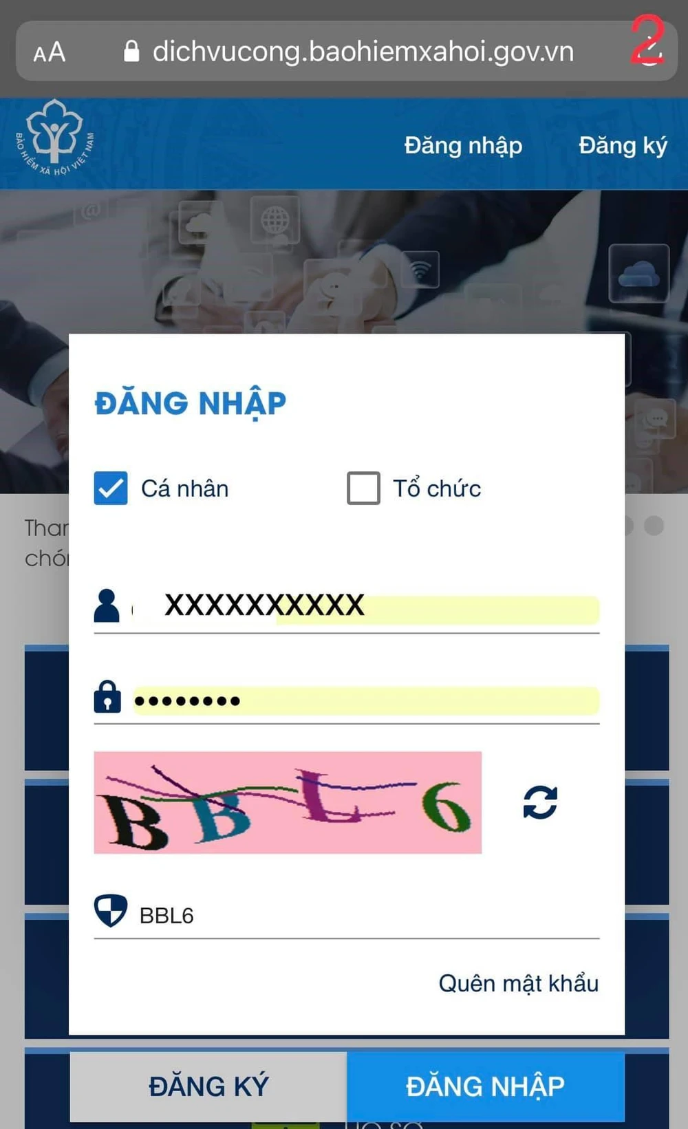 Bước 2: Đăng nhập bằng mã số BHXH và mật khẩu (VssID)