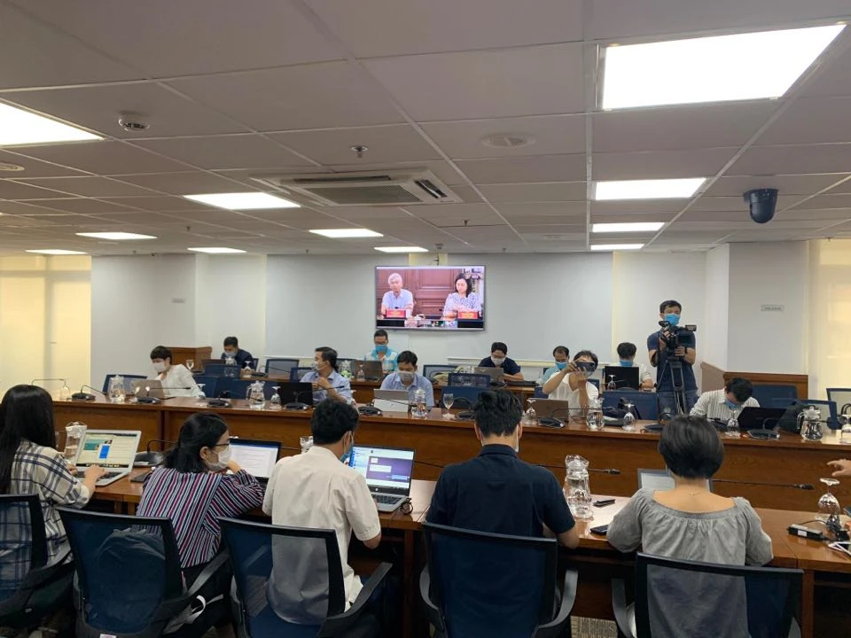 TP.HCM họp thông tin về tình hình truy vết người tiếp xúc với bệnh nhân mắc COVID-19 ở Quảng Ninh. Ảnh: HL