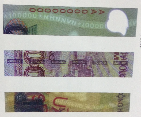Đồng tiền thật được in trên chất liệu polymer, có độ đàn hồi và độ bền cao. Người dân có thể kiểm tra độ đàn hồi bằng cách nắm gọn tờ tiền trong lòng bàn tay, khi mở ra tờ tiền thật sẽ đàn hồi về trạng thái ban đầu. Bạn cũng có thể kéo, xé nhẹ ở mép tờ tiền, tiền thật thì rất khó rách hay bai giãn.