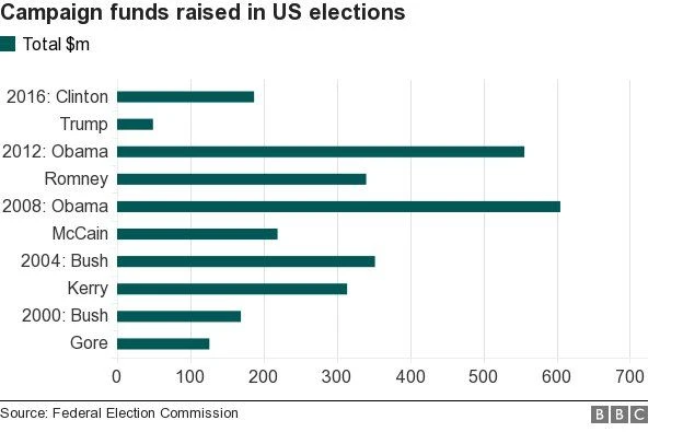 Donald Trump được cho là người chi tiền ít nhất cho cuộc đua vào Nhà Trắng. Ảnh: BBC