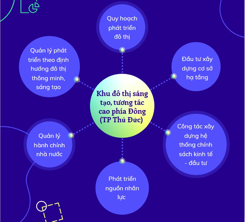 6 giải pháp phát triển TP Thủ Đức thành khu đô thị sáng tạo, tương tác cao phía Đông TP.HCM. Đồ họa: KIÊN CƯỜNG