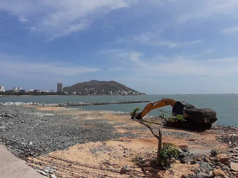Việc san lấp dự án thủy cung Hòn Ngưu bị tạm dừng từ tháng 10-2019. Ảnh: TK