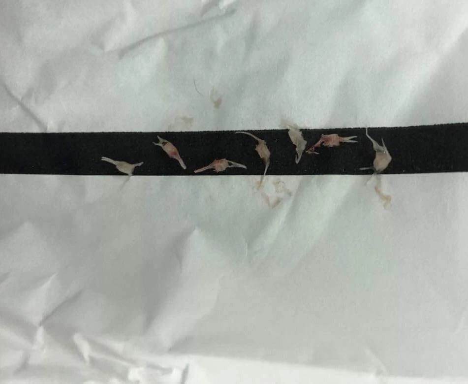 6 mảnh xương cá được gắp ra trong đường thở bé một tuổi. Ảnh: BVCC