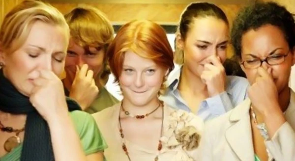 4. Vùng kín có mùi: Nơi này có thể không bị mùi nhưng mồ hôi chảy xuống tích tụ lại thành mùi khó chịu. Bạn nên rửa vùng kín thường xuyên bằng xà bông dịu nhẹ, luôn giữ khô ráo bằng cách mặc quần lót cotton, thay ngày hai lần.