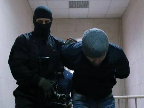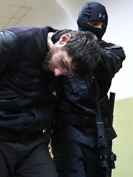 Cảnh sát áp giải Zaur Dadaev đến phiên tòa