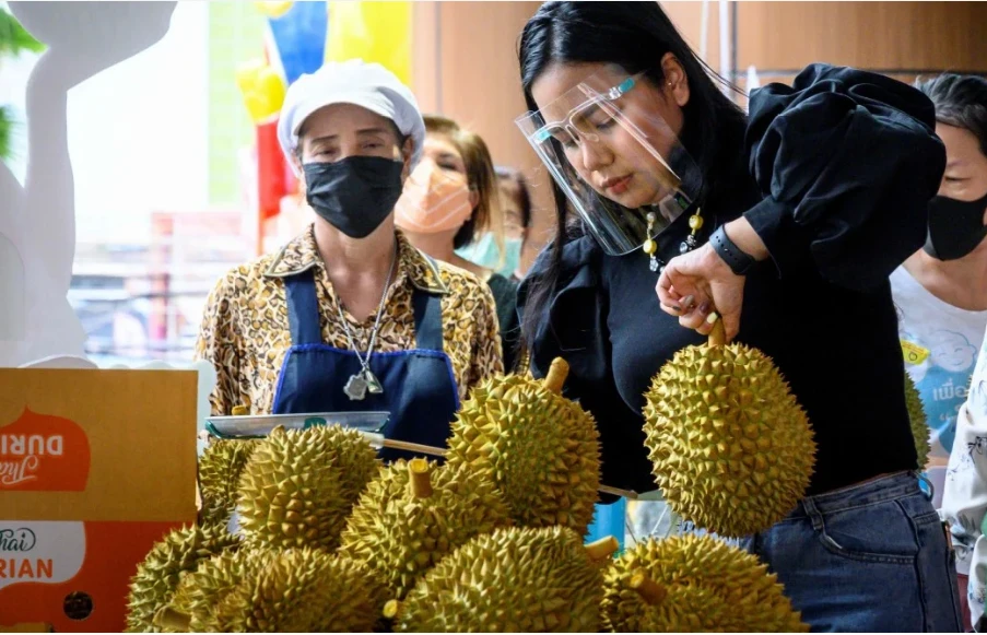 Sầu riêng được bày bán ở dọc đường thủ đô Bangkok, Thái Lan. Ảnh: AFP