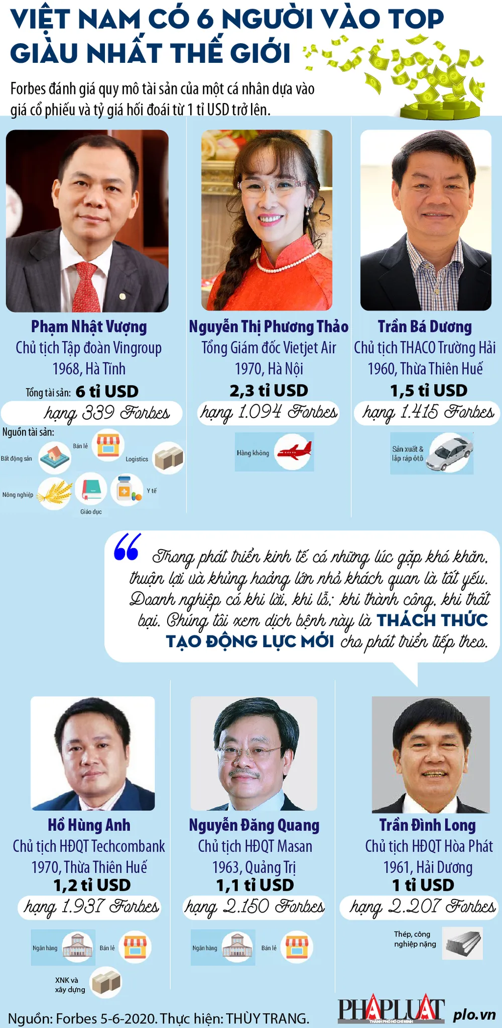 6 tỉ phú USD người Việt vào top giàu nhất thế giới