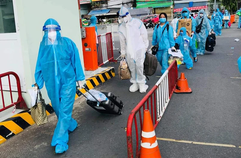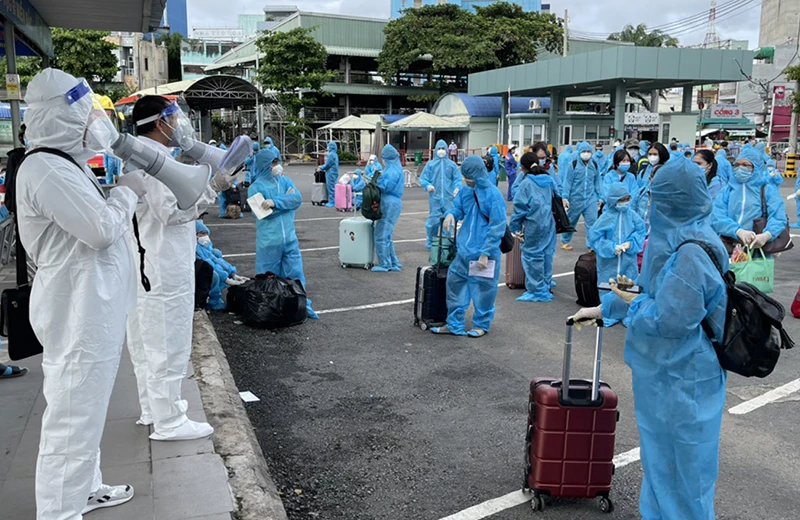 Sáng 10-9, 20 chuyến xe chở 450 người Bình Định tại TP.HCM đã về đến TP Quy Nhơn (Bình Định). Trong đó, có 373 học sinh, 24 thai phụ, 36 người có hoàn cảnh khó khăn, bệnh tật, 27 người đi cùng.