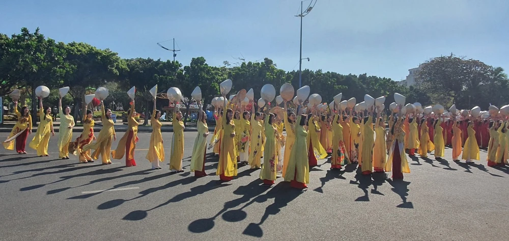 Ngày 6-3, tại khu vực công viên biển Bãi Trước, Hội Liên hiệp Phụ nữ cùng Liên đoàn lao động TP Vũng Tàu tổ chức đồng diễn áo dài, xếp chữ với sự tham gia của 600 nữ cán bộ, công nhân viên chức, người lao động, hội viên hội phụ nữ TP Vũng Tàu.