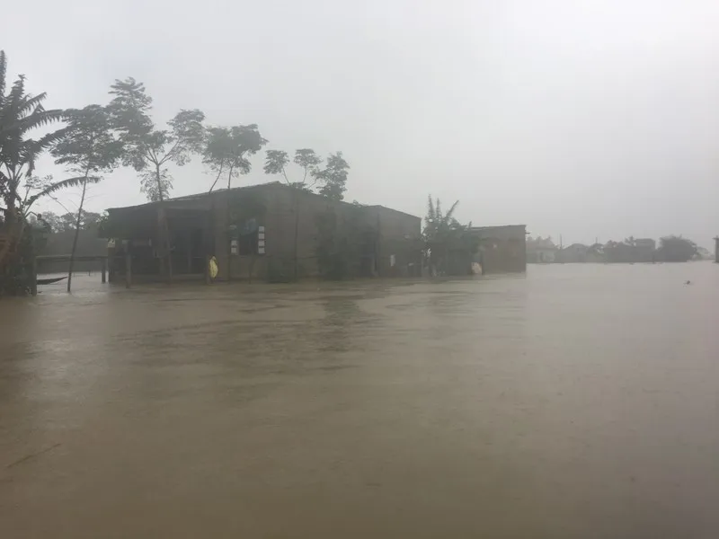 Nhiều ngôi nhà ở Huế bị cô lập hoàn toàn bởi mưa lũ. Ảnh: N.DO