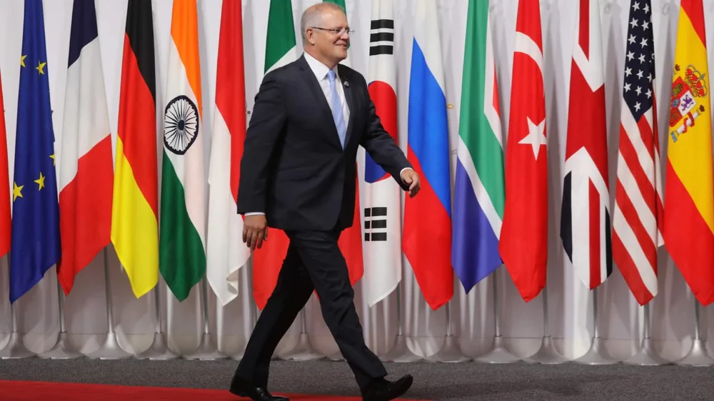 Thủ tướng Úc Scott Morrison tham gia Hội nghị thượng đỉnh nhóm G20 2019 ở TP Osaka, Nhật Bản. Ảnh: AFP