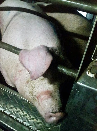Heo ngủ li bì trong suốt quá trình vận chuyển do bị tiêm thuốc an thần. Ảnh: CT