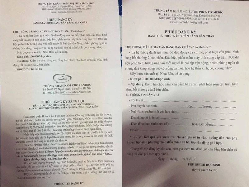 Liên quan đến việc Trường Tiểu học Võ Thị Sáu (Hoàn Kiếm, Hà Nội) phát các loại phiếu đăng ký khám sức khỏe cho phụ huynh học sinh gồm “Phiếu đăng ký đánh giá chức năng cân bằng bàn chân” và “Phiếu đăng ký sàng lọc bất thường bộ phận sinh dục cho học sinh nam tại các trường tiểu học trên địa bàn Hoàn Kiếm” khiến phụ huynh hoang mang với số liệu ghi trong tờ phiếu.