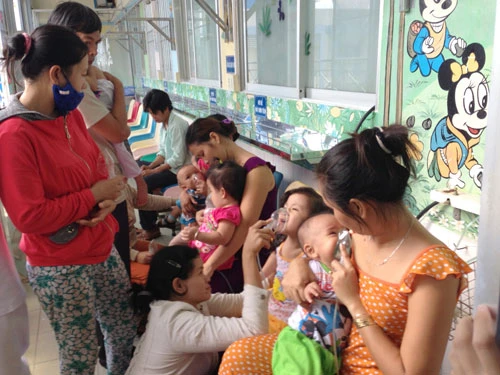 Trẻ em ở đô thị lớn dễ bị bệnh ho hơn các vùng khác. Ảnh: Trẻ đang điều trị các bệnh đường hô hấp tại BV Nhi đồng 1.Ảnh: TÙNG SƠN