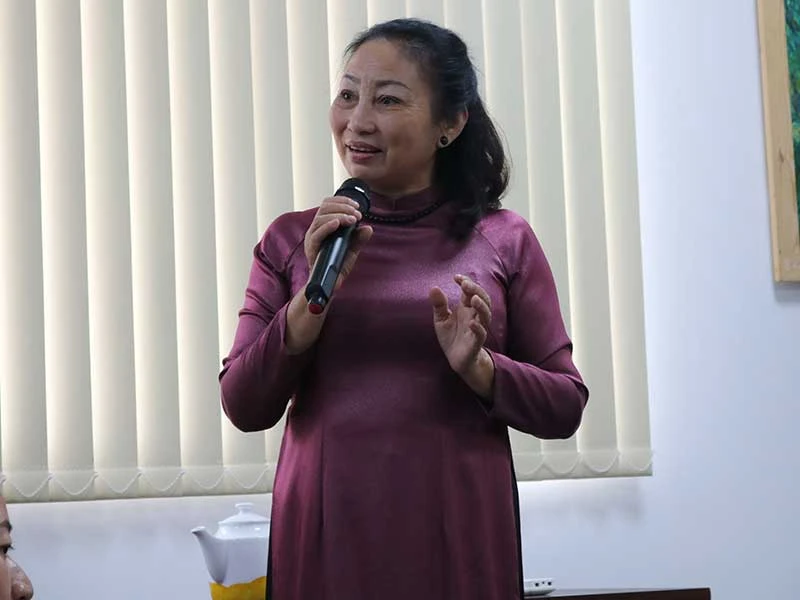 Cô Hiền thường xuyên tham gia các cuộc trò chuyện, giao lưu. Ảnh: TL