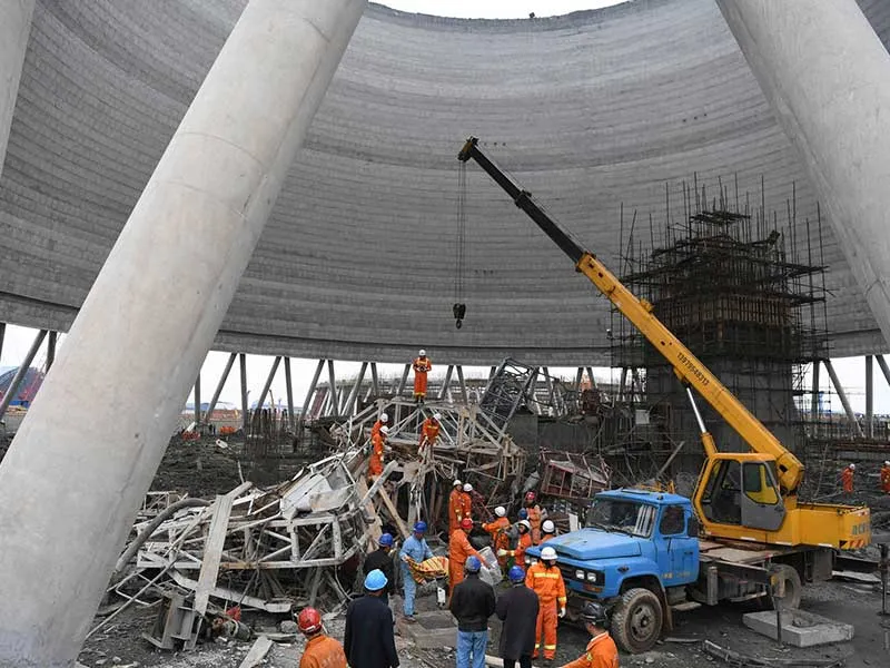 Tai nạn xảy ra khoảng 7 giờ 30 sáng cùng ngày sau khi cần cẩu ngã xuống giàn giáo (ảnh). Khoảng 200 nhân viên cứu hộ và 32 xe đã được điều động tìm kiếm người bị chôn vùi. Thủ tướng Lý Khắc Cường đã chỉ thị mở cuộc điều tra và trừng phạt người có trách nhiệm để xảy ra tai nạn.
