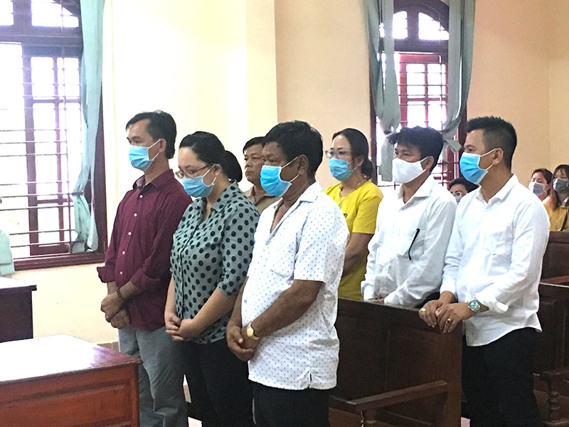 Các bị cáo nghe tòa sơ thẩm tuyên án vào chiều 13-8. Ảnh: NHẪN NAM