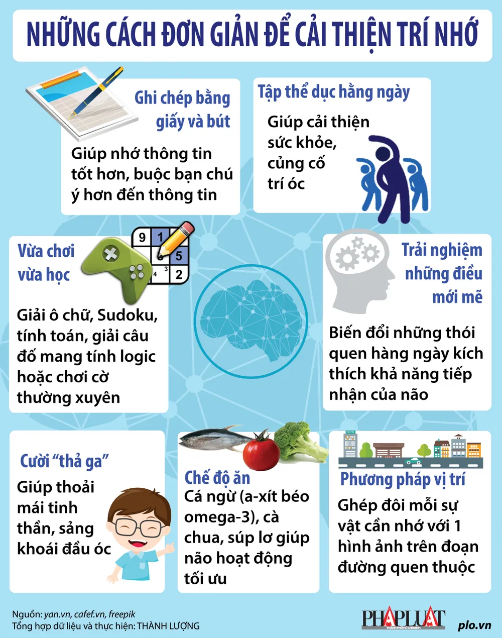 (PLO)- Trí nhớ không tự nhiên có được mà phải thông qua quá trình tập luyện. Do đó, cách dễ dàng nhất để bạn cải thiện sức mạnh não bộ, cải thiện trí nhớ là hãy tạo cho mình những thói quen sinh hoạt lành mạnh hằng ngày.