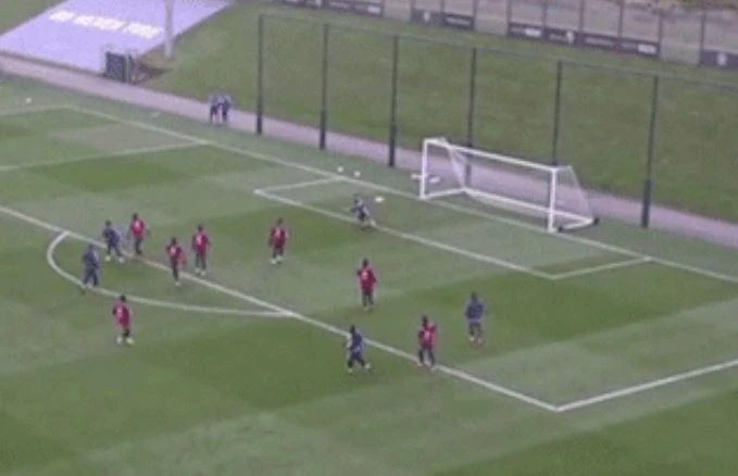 Dù chỉ trên sân tập nhưng siêu sao Lionel Messi vẫn cho thấy đẳng cấp và sự khác biệt của mình so với phần còn lại bằng những kỹ năng có một không hai. Trước vòng vây 7 cầu thủ Argentina "dàn trận" phòng ngự rất kỷ luật nhưng một mình Messi cũng vượt qua tất cả rồi ra chân ngoài vòng cấm ghi bàn đầy tinh tế.
