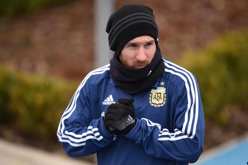 Messi co ro vì lạnh trong buổi tập của đội tuyển Argentina.