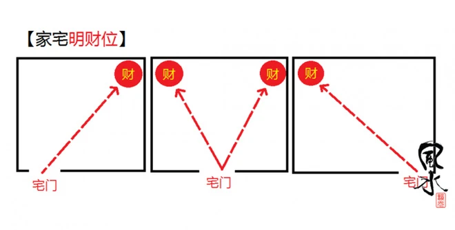Tài vị lý tưởng luôn nằm trên đường chéo từ lối vào phòng khách. Nếu như cửa nhà ở bên trái thì tài vị nằm ở trên đỉnh góc chéo bên phải, cửa nhà ở bên phải thì tài vị nằm trên đỉnh góc chéo bên trái. Với cửa nhà nằm ở giữa thì vị trí này nằm ở đỉnh góc chéo bên trái và bên phải.