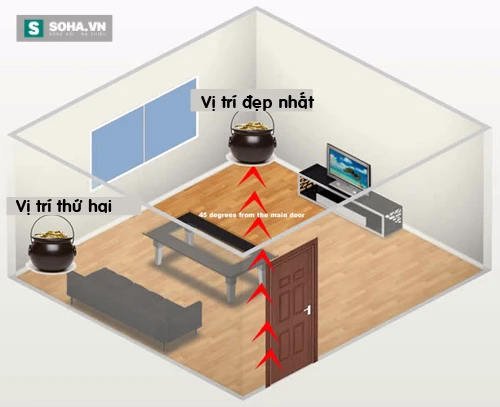 Vị trí tài vị trong nhà khi nhìn từ cửa ở bên trái, bên phải và ở giữa.