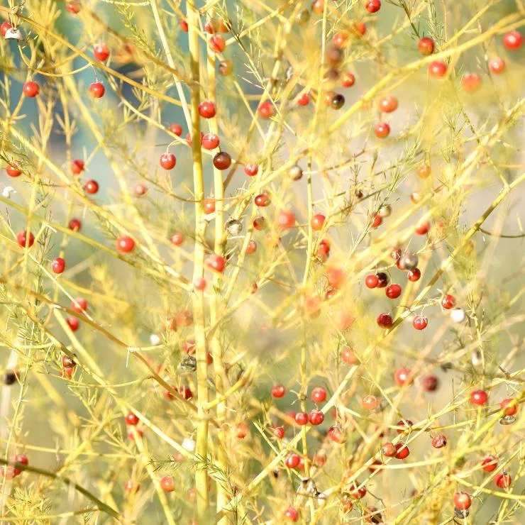 Cây măng tây cái có thể sinh ra quả màu đỏ. Nhưng các quả này chứa chất sapogenin, một loại độc chất dạng nhẹ đối với người và rất độc với động vật. Nếu ăn phải trái này, bạn có thể bị nôn và tiêu chảy.