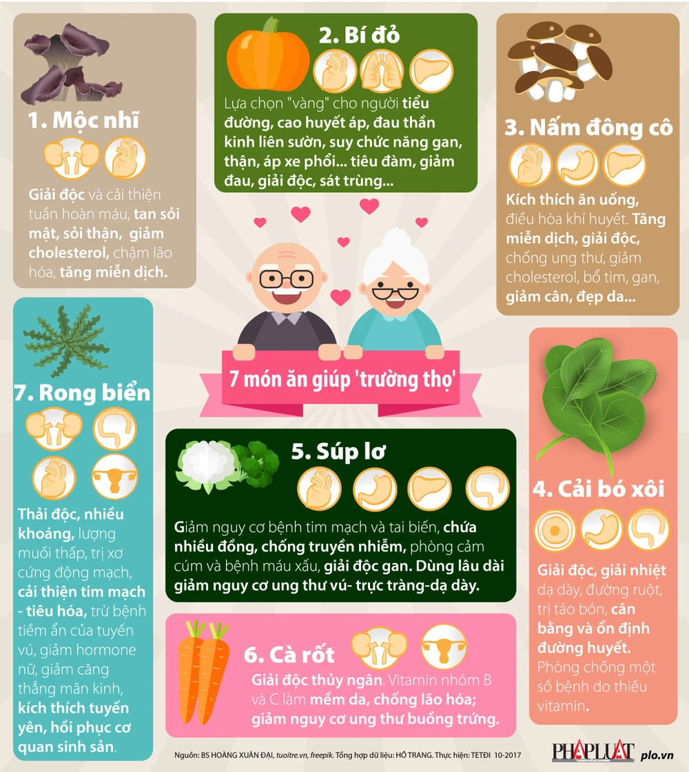 (PLO)- Một số thực phẩm là thuốc quý từ xa xưa, nếu chúng ta thường xuyên ăn sẽ trường thọ. Dưới đây là 7 thực phẩm theo giới thiệu của bác sĩ Hoàng Xuân Đại.