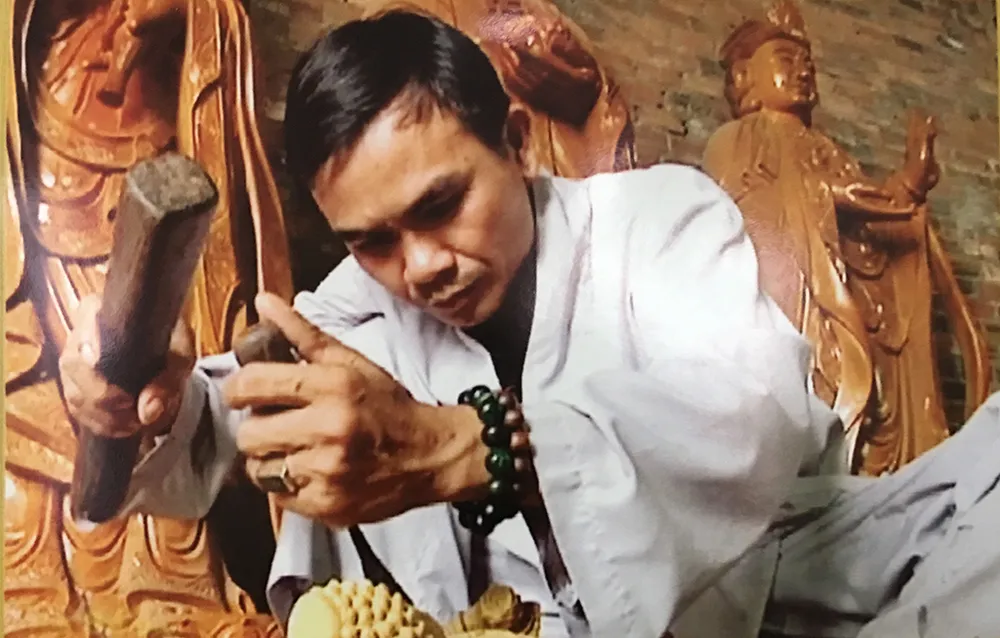 Anh Dương Tự Thừa Hùng (ngụ Hóc Môn) sau khi hồi gia đã mở xưởng tạc gỗ mỹ nghệ tạo việc làm cho những người hồi gia và trẻ em cơ nhỡ. (Ảnh chụp lại từ tư liệu)