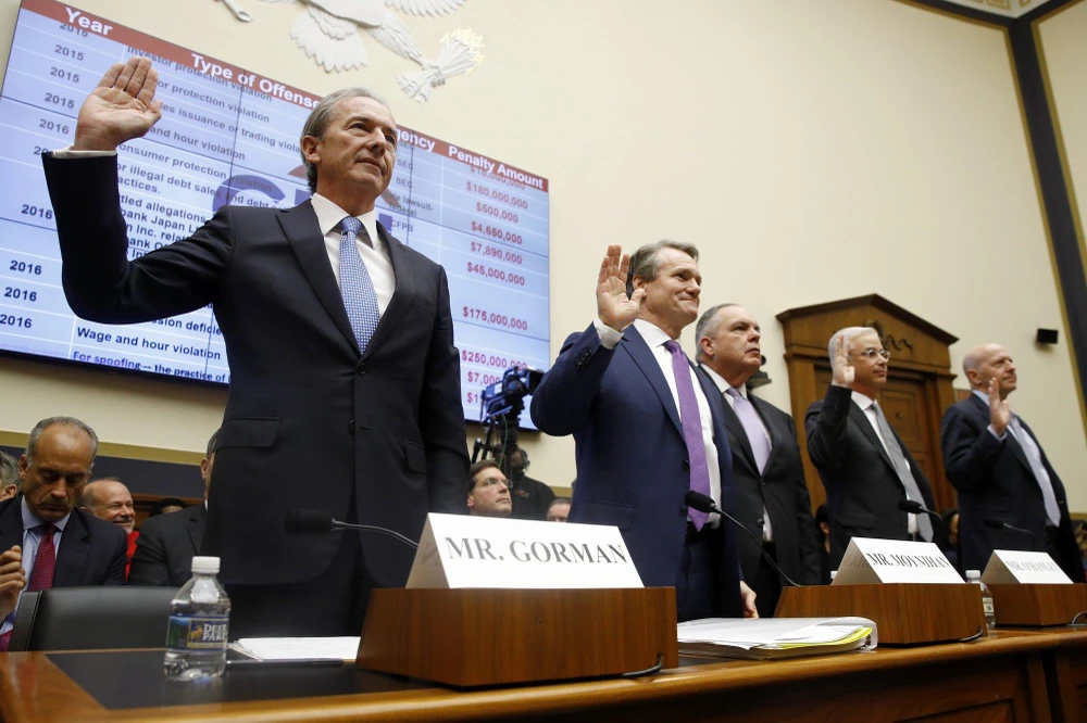 Các CEO 7 ngân hàng đến cuộc điều trần có đem theo những báo cáo cân đối thu chi lành mạnh, ý thức rõ họ có năm lợi nhuận kỷ lục (hồi năm 2018) nhờ đảng Cộng hòa duyệt giảm thuế hồi năm 2017, nên họ sẵn sàng cãi rằng Thị trường Phố Wall đã thay đổi những hoạt động từng gây ra cuộc khủng hoảng, và nhấn mạnh những đóng góp của ngành ngân hàng cho nền kinh tế Mỹ.