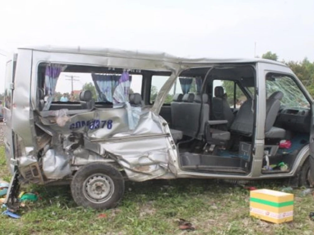 Chiếc xe ô tô biến dạng sau vụ TNGT đường sắt tại tỉnh Đồng Nai vào ngày 1-2