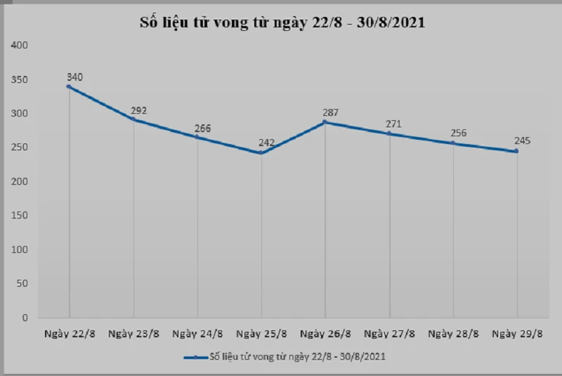 Trong ngày 26-8, số bệnh nhân COVID-19 tử vong có tăng nhẹ với 287 người, nhưng đã giảm sau đó. Ngày 27-8, toàn TP có 271 người tử vong do COVID-19 và hai ngày sau đó số bệnh nhân tử vong lần lượt là 256 người và 245 người.