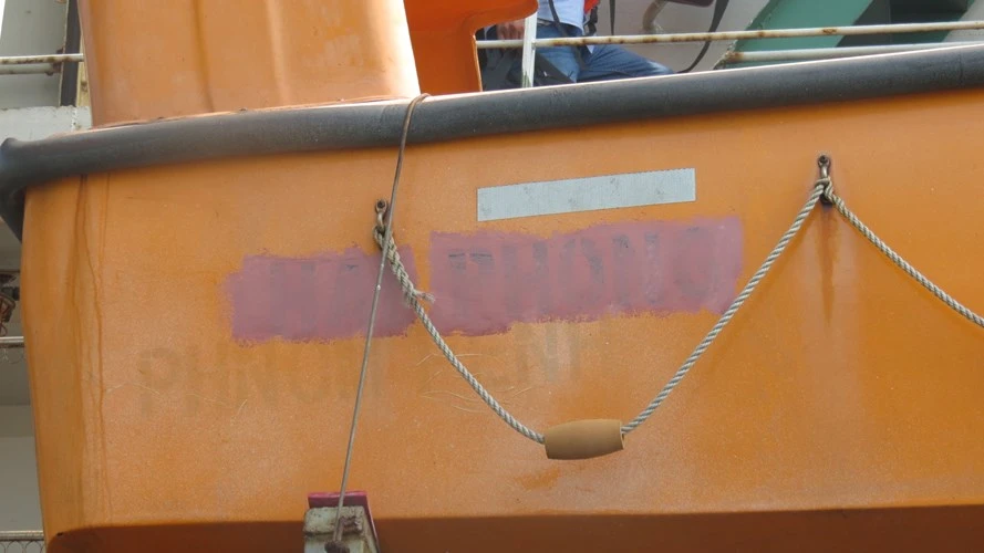 Tuy nhiên, với một con tàu bình thường, nếu có những dấu sơn đỏ nguệch ngoạc che đi phần chữ trên thuyền cứu sinh như vậy càng gây tò mò. Cũng giống như xe chạy ngoài đường nhưng che đi biển số chỉ càng khiến thiên hạ chú ý.