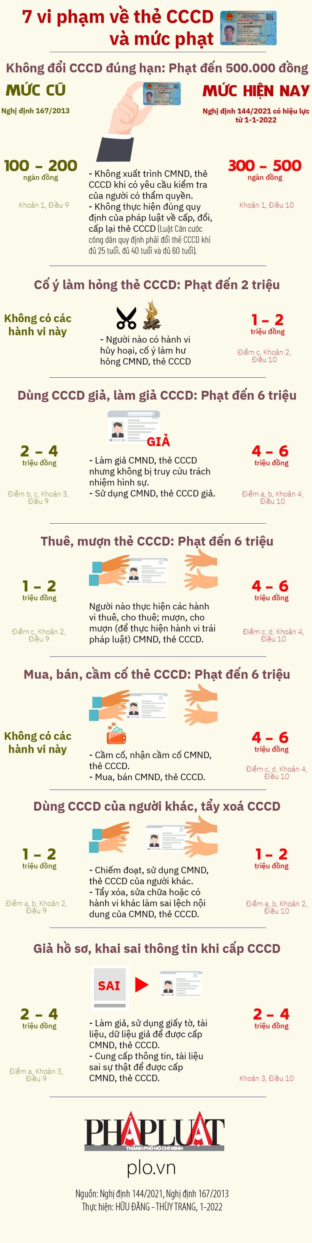 (PLO)- Nghị định 144/2021 (có hiệu lực từ 1-1-2022) đã tăng mức phạt đối với nhiều hành vi vi phạm liên quan đến thẻ Căn cước công dân (CCCD) so với quy định cũ.