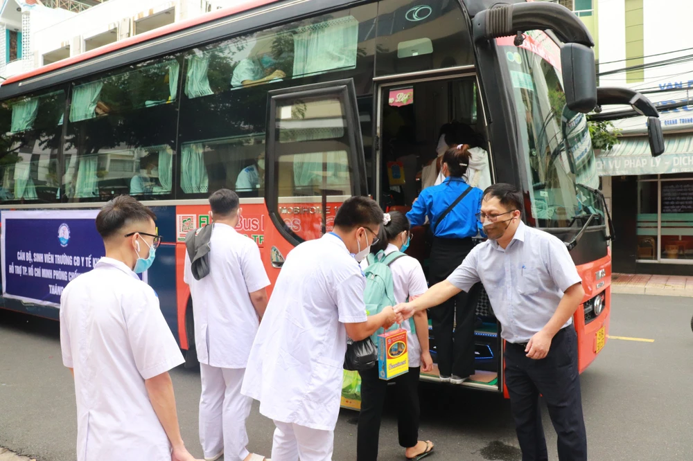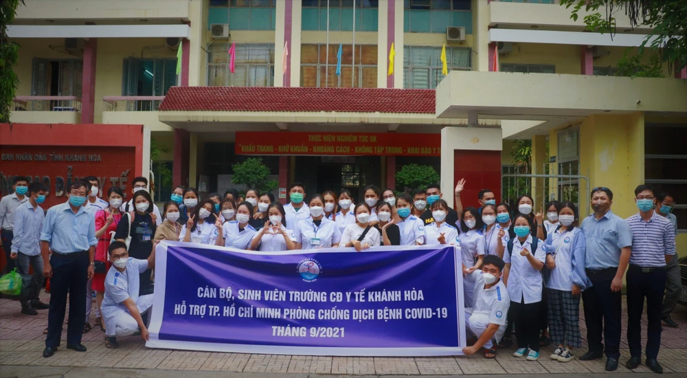 Tại lễ xuất quân, ông Đinh Văn Thiệu, Phó Chủ tịch UBND tỉnh ghi nhận và biểu dương tinh thần tình nguyện xung phong vào tuyến đầu chống dịch của các sinh viên trường Cao đẳng Y tế Khánh Hòa. Ông Thiệu yêu cầu các thành viên tham gia đoàn công tác khi vào TP.HCM phải làm việc với tinh thần và trách nhiệm cao nhất, tuyệt đối tuân thủ các quy định, quy trình về công tác phòng, chống dịch của Bộ Y tế và tại nơi công tác; giữ gìn sức khỏe, cống hiến hết mình, quyết tâm góp phần cùng TP. HCM đẩy lùi, tiến tới khống chế và dập tắt dịch bệnh.