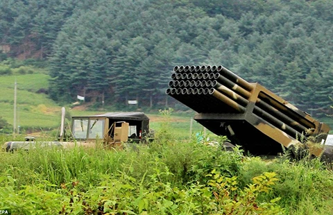 Quân đội Hàn Quốc đã điều pháo nhiều nòng đến gần khu phi quân sự. Ảnh: EPA