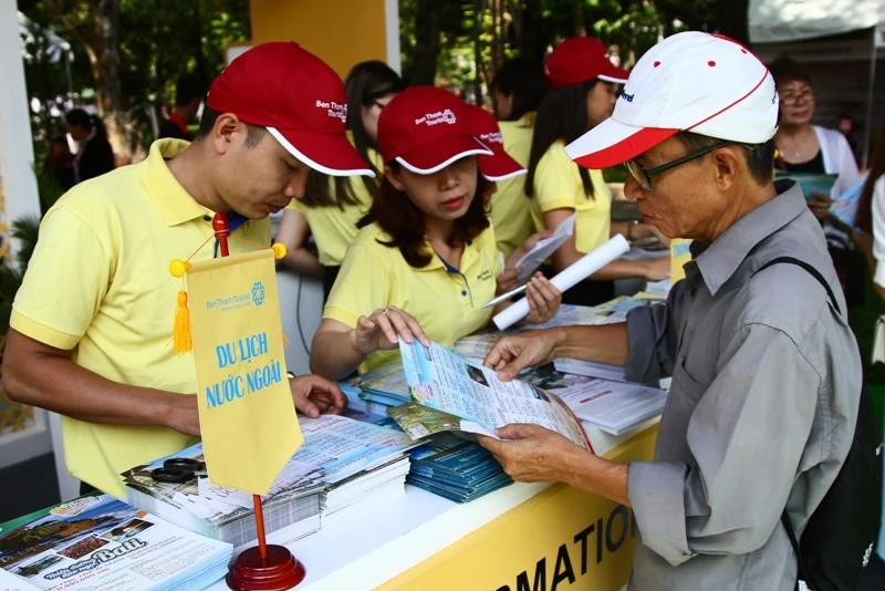 Du khách tìm hiểu mua tour tại Ngày hội du lịch TP.HCM năm 2018.