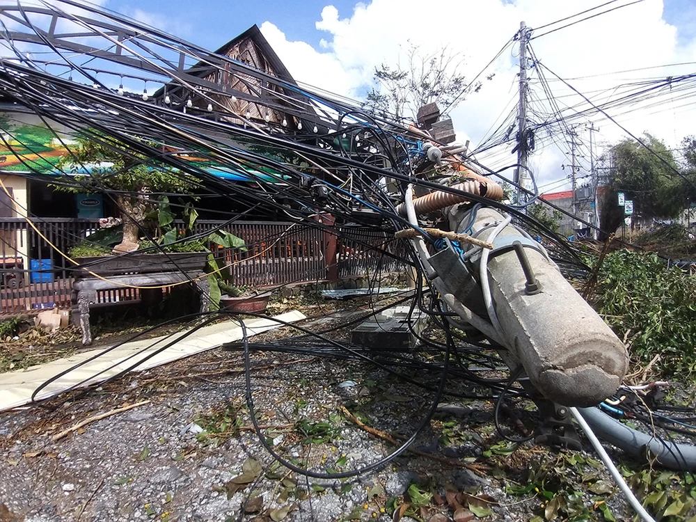 Bên cạnh hệ thống điện bị cắt, các tuyến cáp viễn thông cũng bị đứt, hư hỏng do thiên tai, công tác khắc phục phải mất một thời gian dài sau đó.